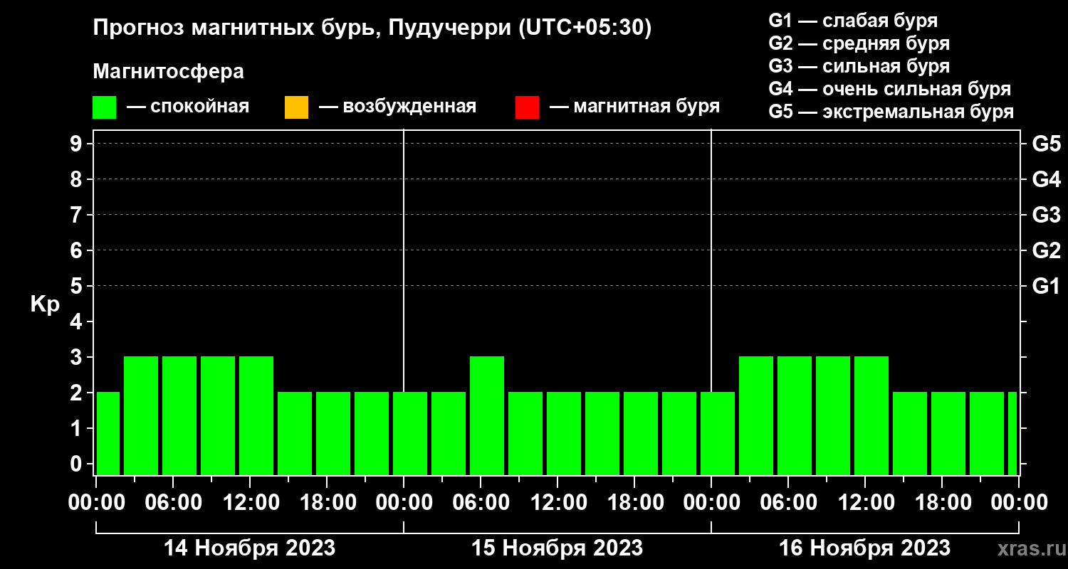 Прогноз магнитных бурь Пудучерри — 14 ноября 2023 года