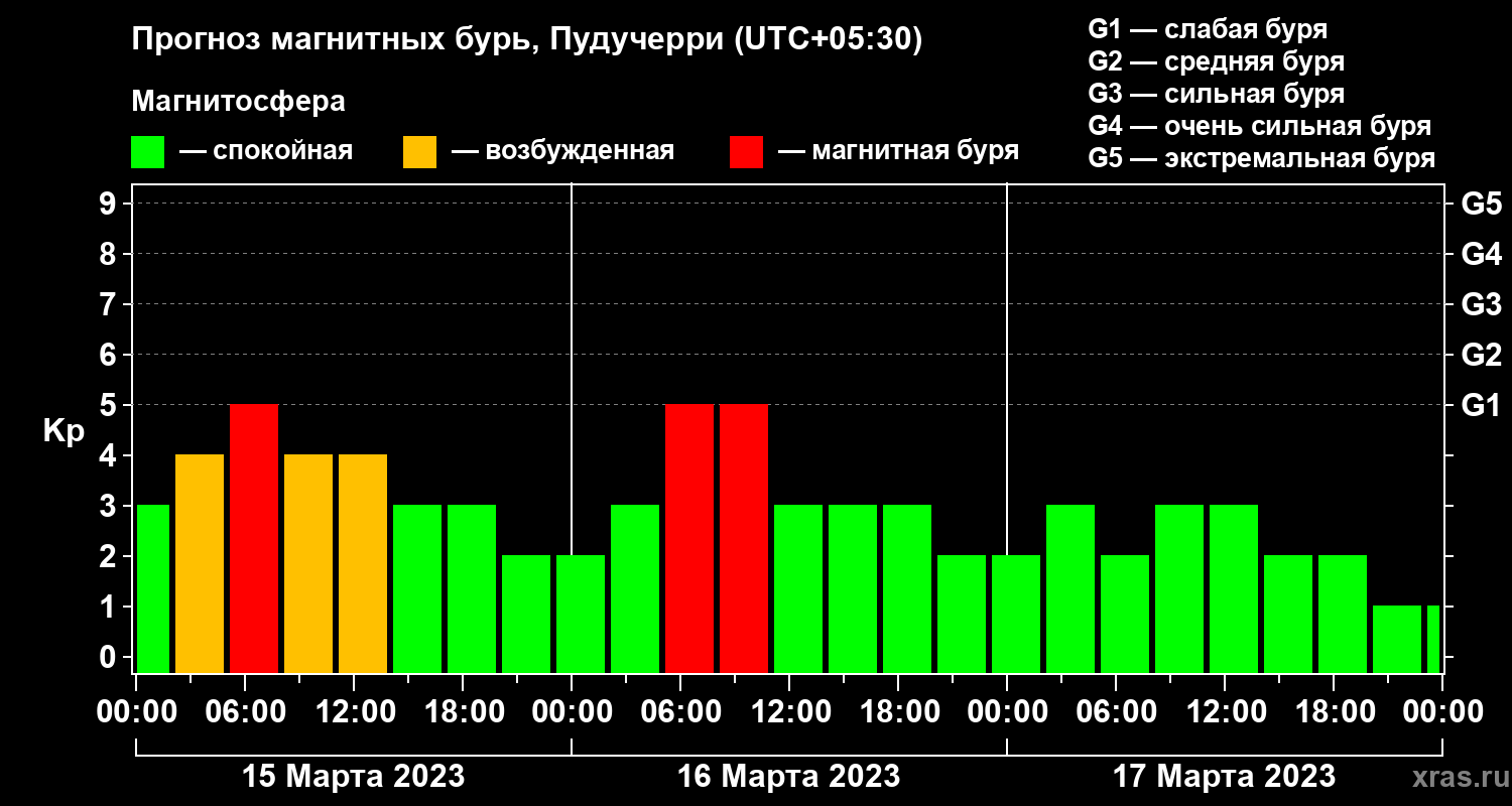 Прогноз магнитных бурь Пудучерри — 15 марта 2023 года