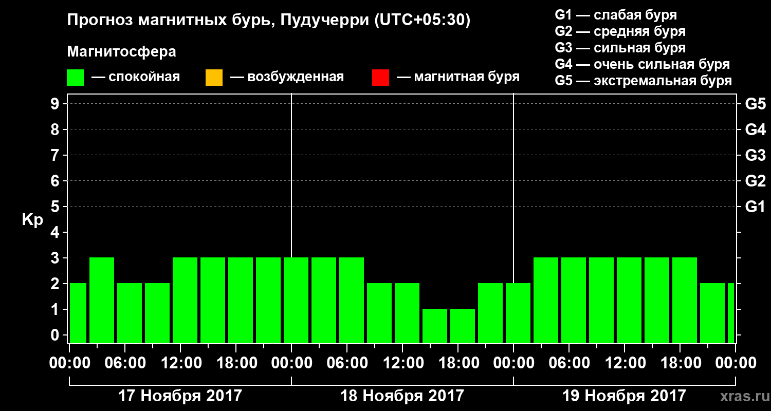 Прогноз магнитных бурь Пудучерри — 17 ноября 2017 года