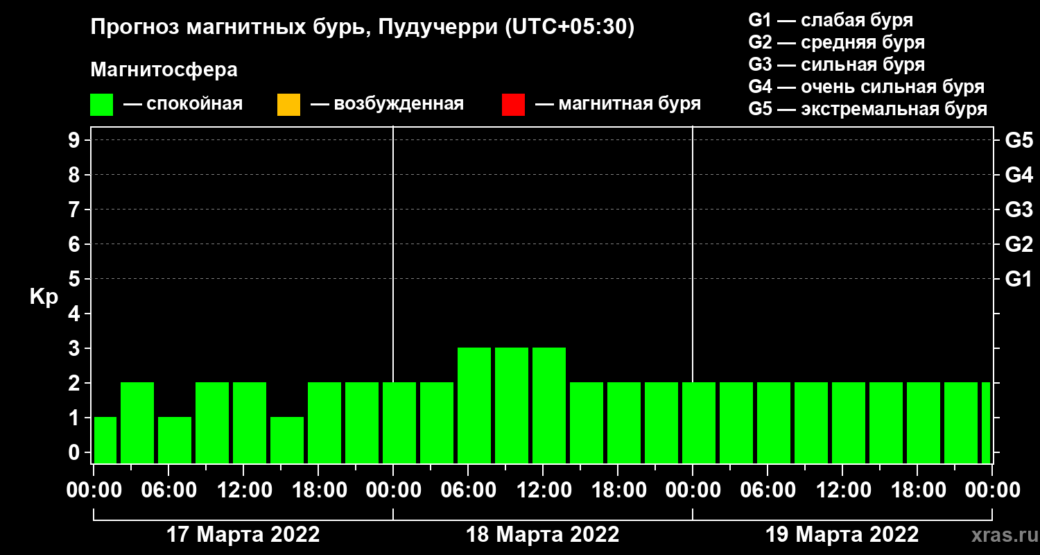 Прогноз магнитных бурь Пудучерри на 17 марта 2022 года