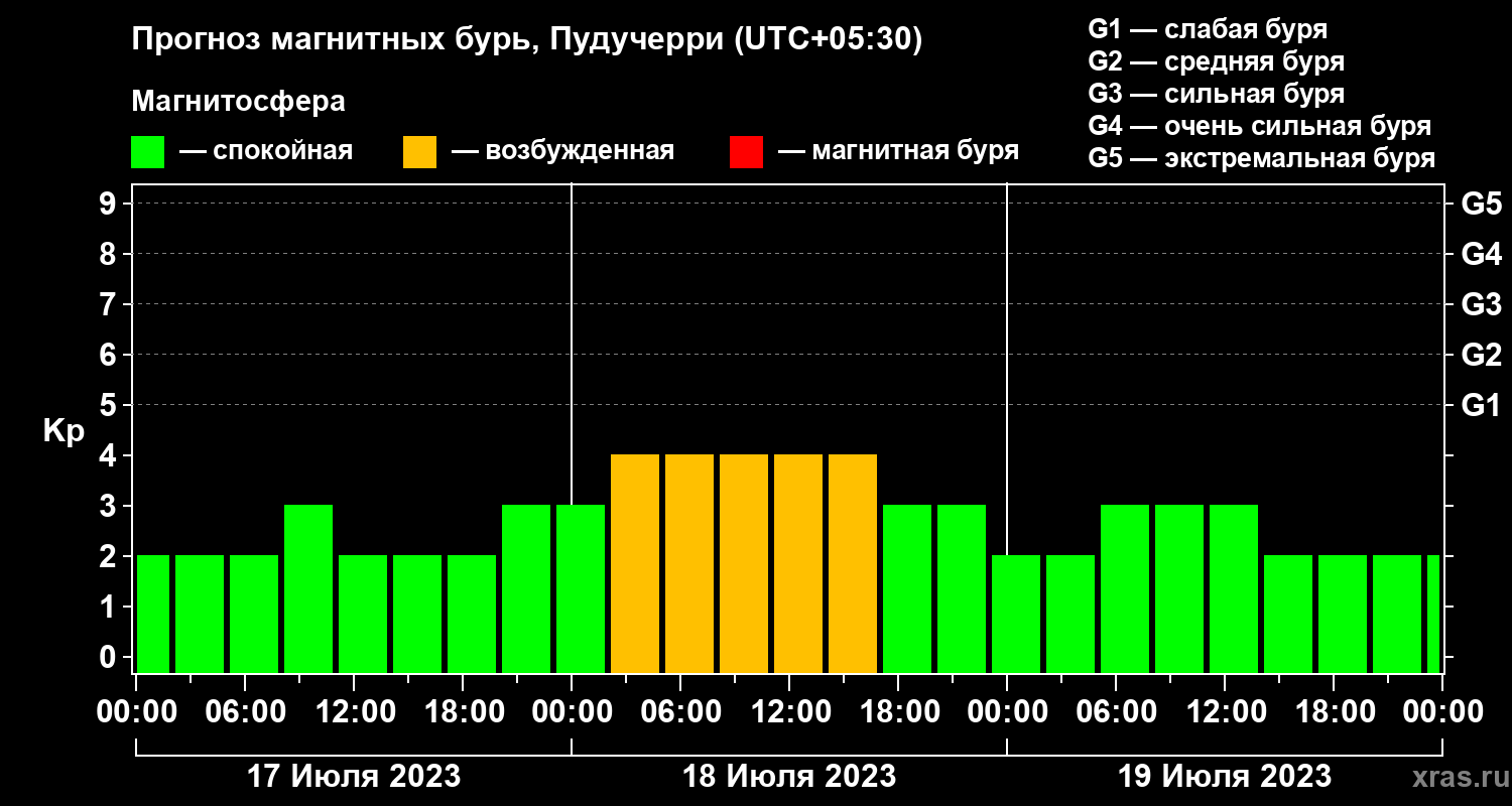Прогноз магнитных бурь Пудучерри — 17 июля 2023 года