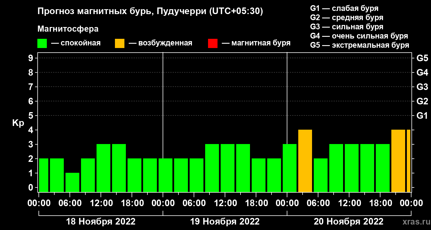 Прогноз магнитных бурь Пудучерри — 18 ноября 2022 года