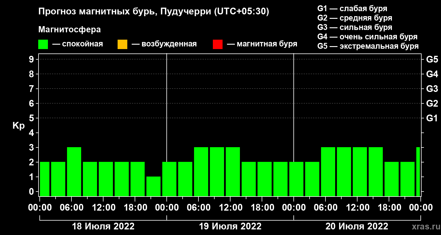 Прогноз магнитных бурь Пудучерри — 18 июля 2022 года