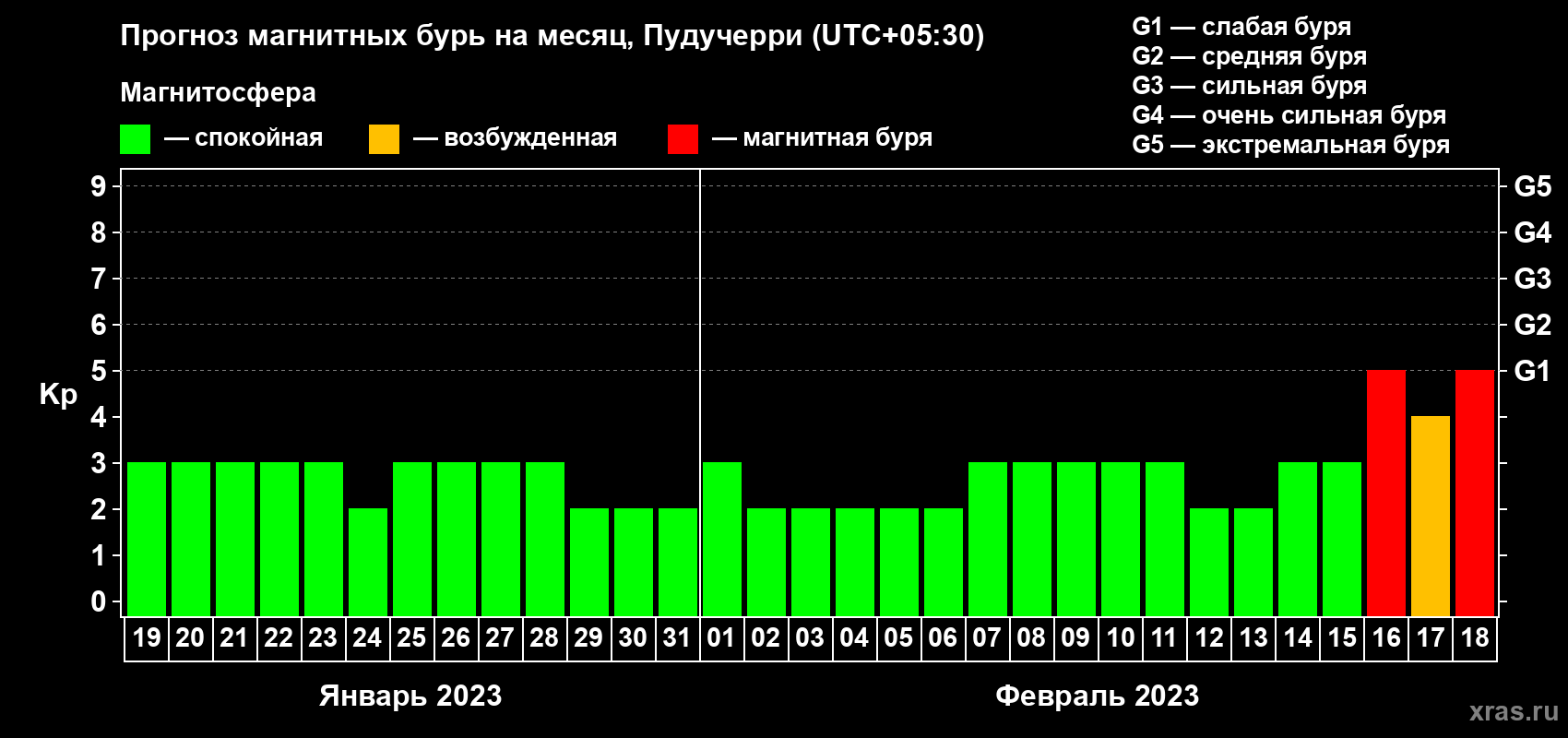 Прогноз магнитных бурь Пудучерри — 19 января 2023 года