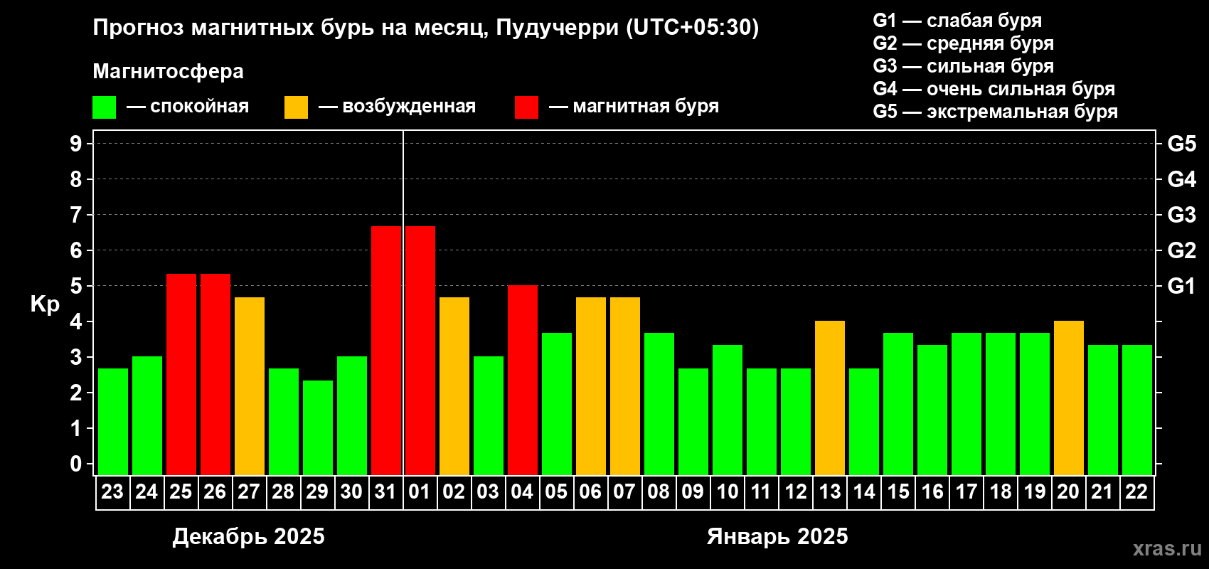 Прогноз магнитных бурь Пудучерри — 23 декабря 2024 года