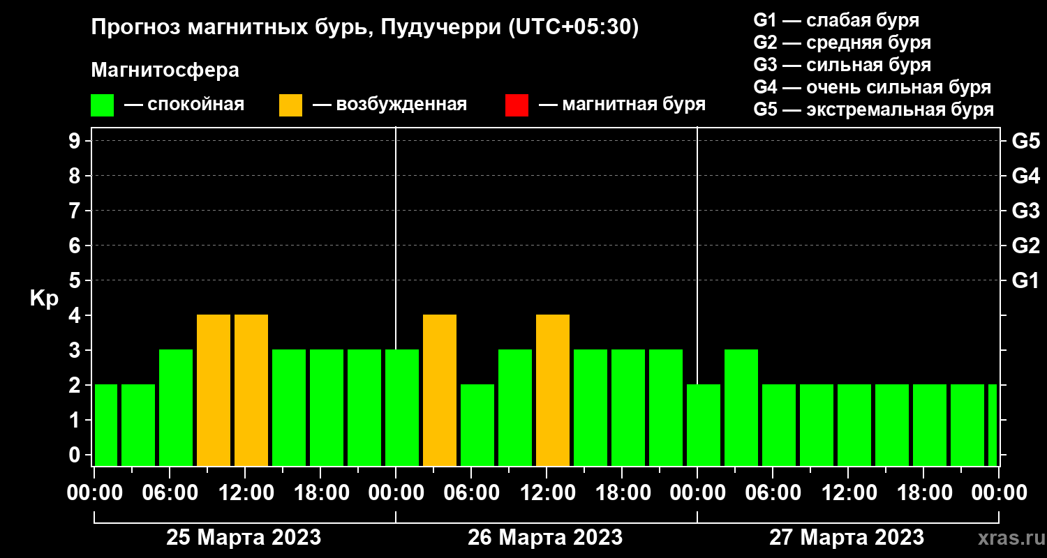 Прогноз магнитных бурь Пудучерри — 25 марта 2023 года