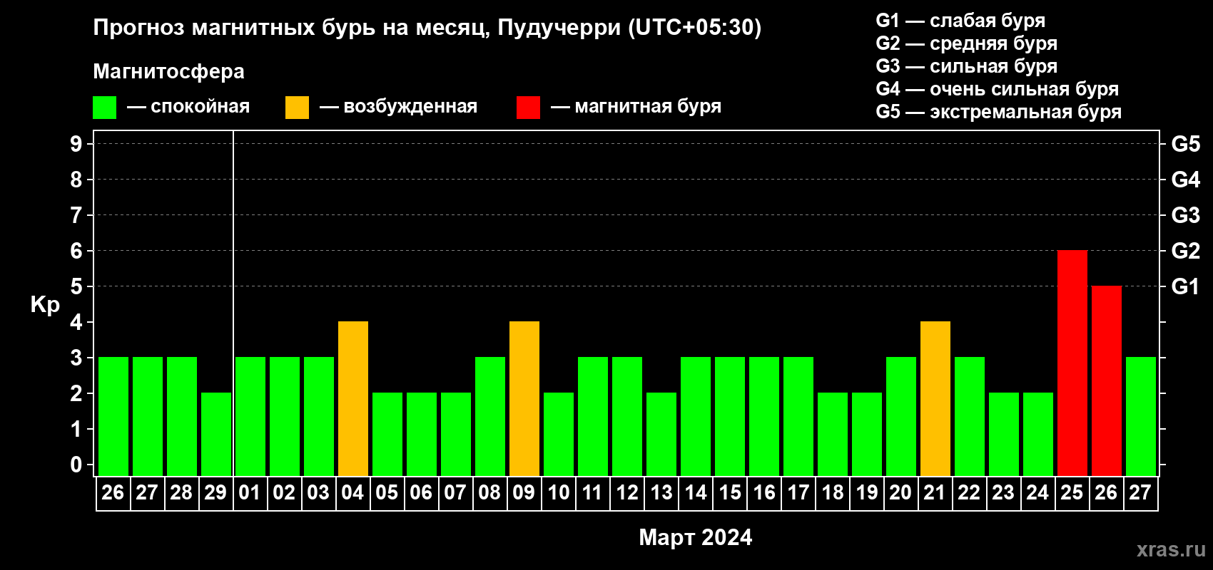 Прогноз магнитных бурь Пудучерри — 26 февраля 2024 года