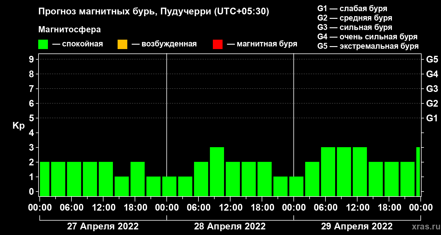 Прогноз магнитных бурь Пудучерри — 27 апреля 2022 года