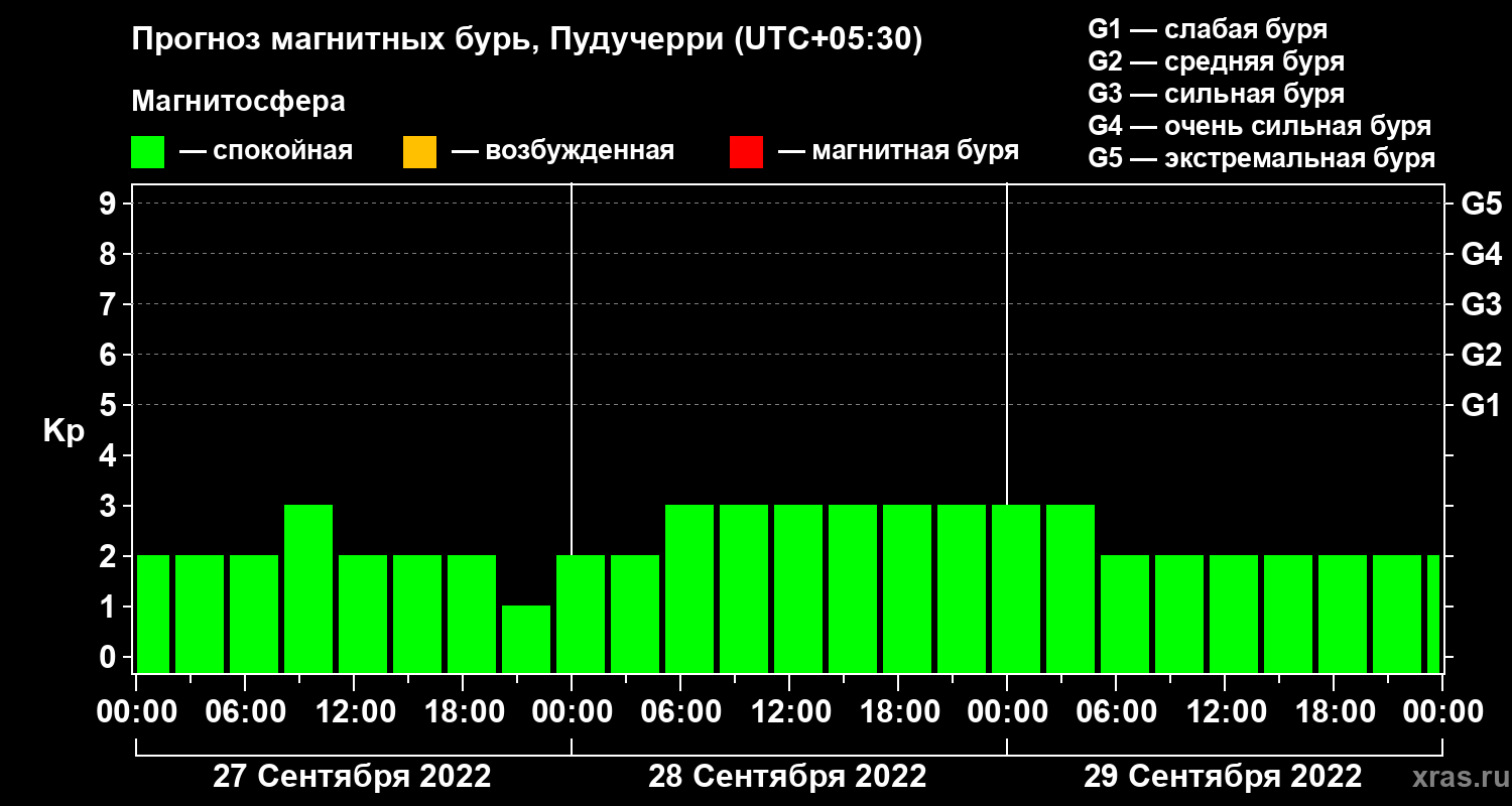 Прогноз магнитных бурь Пудучерри на 27 сентября 2022 года