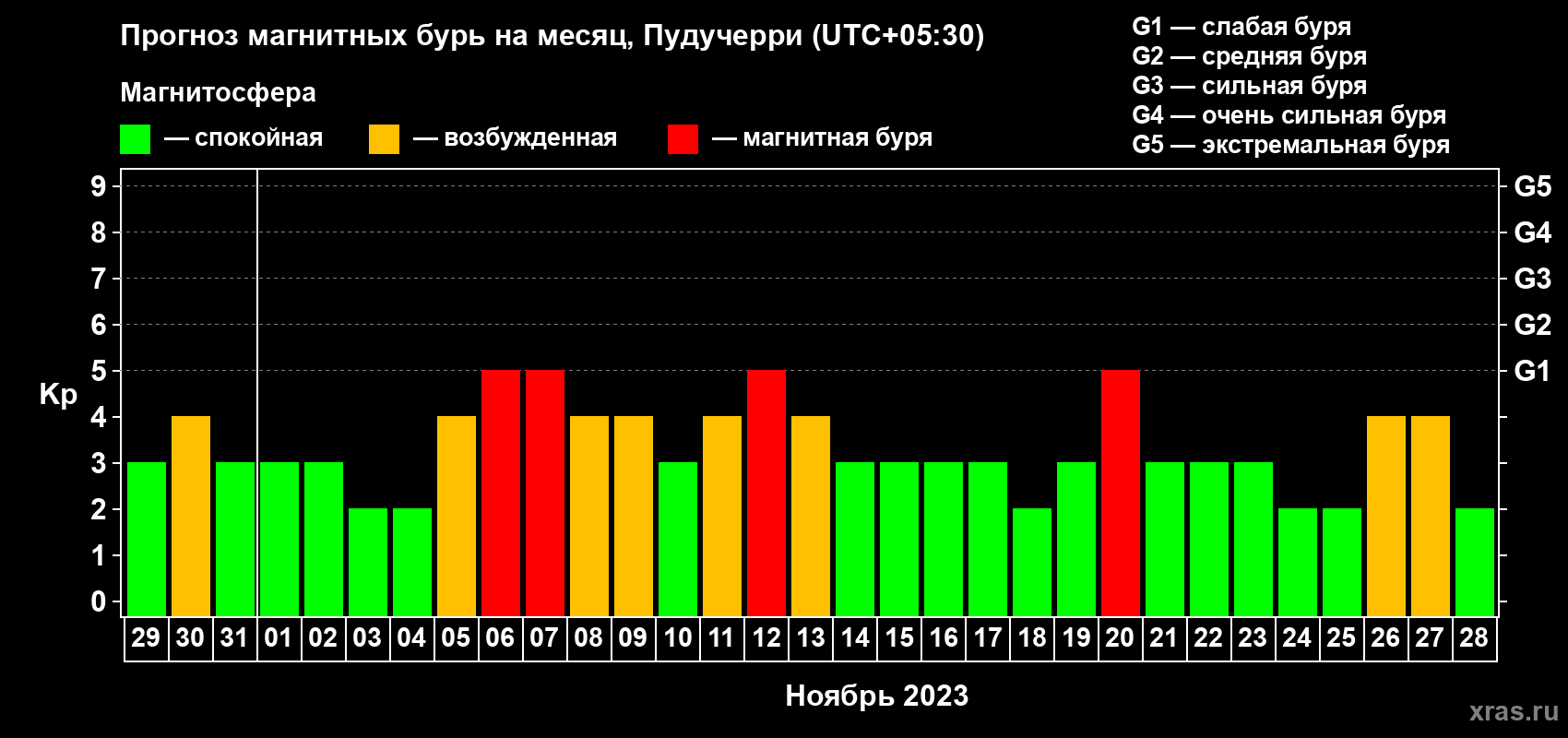 Прогноз магнитных бурь Пудучерри — 29 октября 2023 года