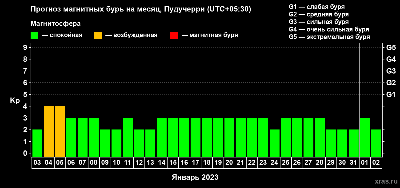 Прогноз магнитных бурь Пудучерри — 3 января 2023 года