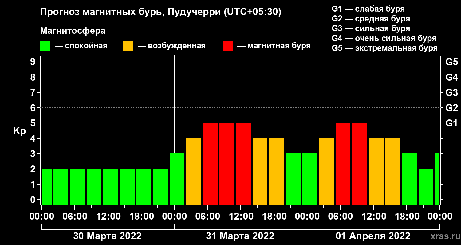 Прогноз магнитных бурь Пудучерри — 30 марта 2022 года