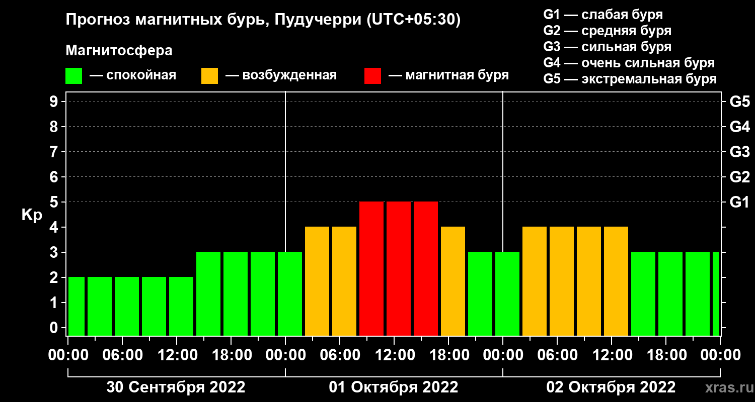Прогноз магнитных бурь Пудучерри на 30 сентября 2022 года