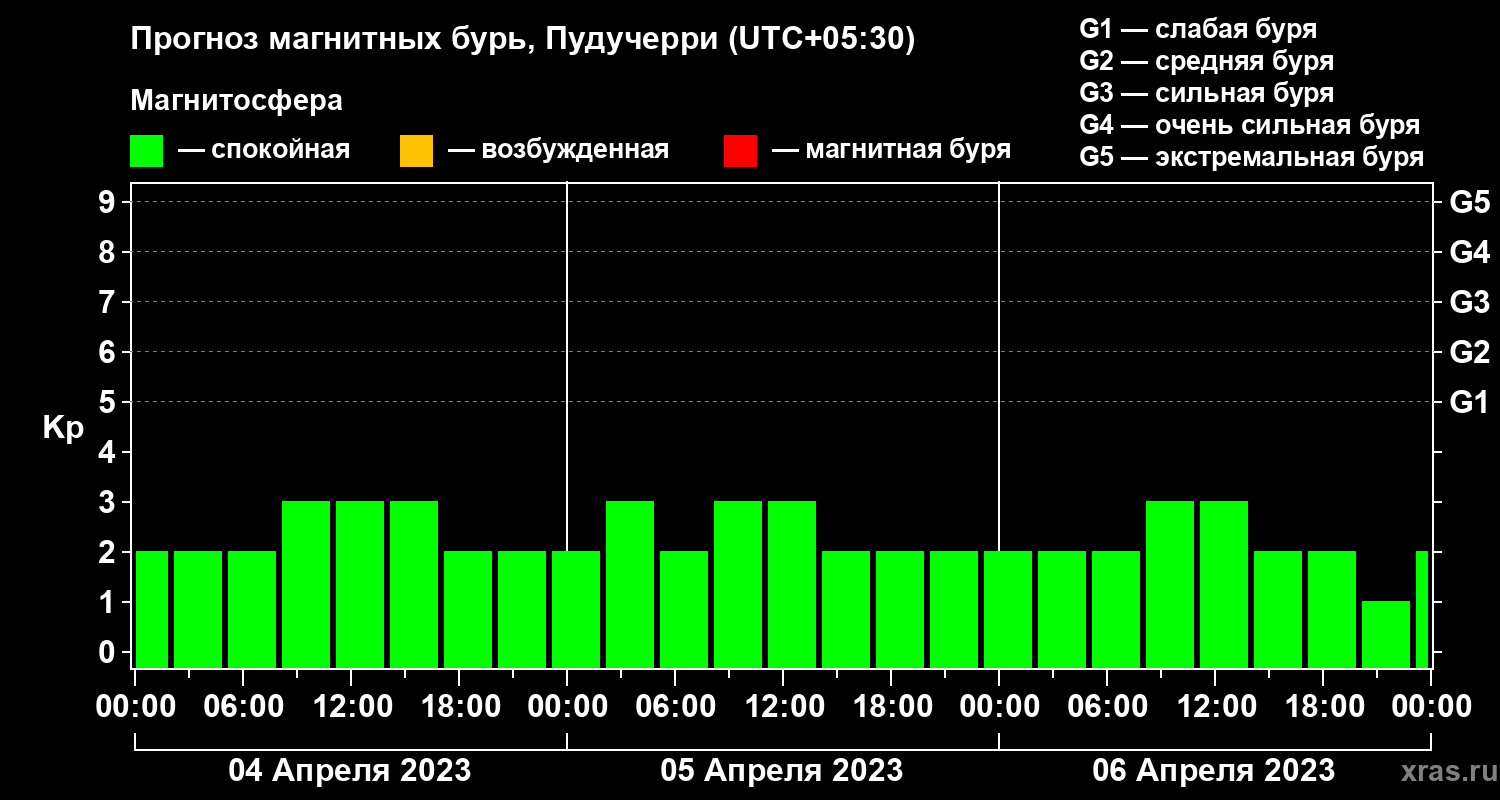 Прогноз магнитных бурь Пудучерри — 4 апреля 2023 года
