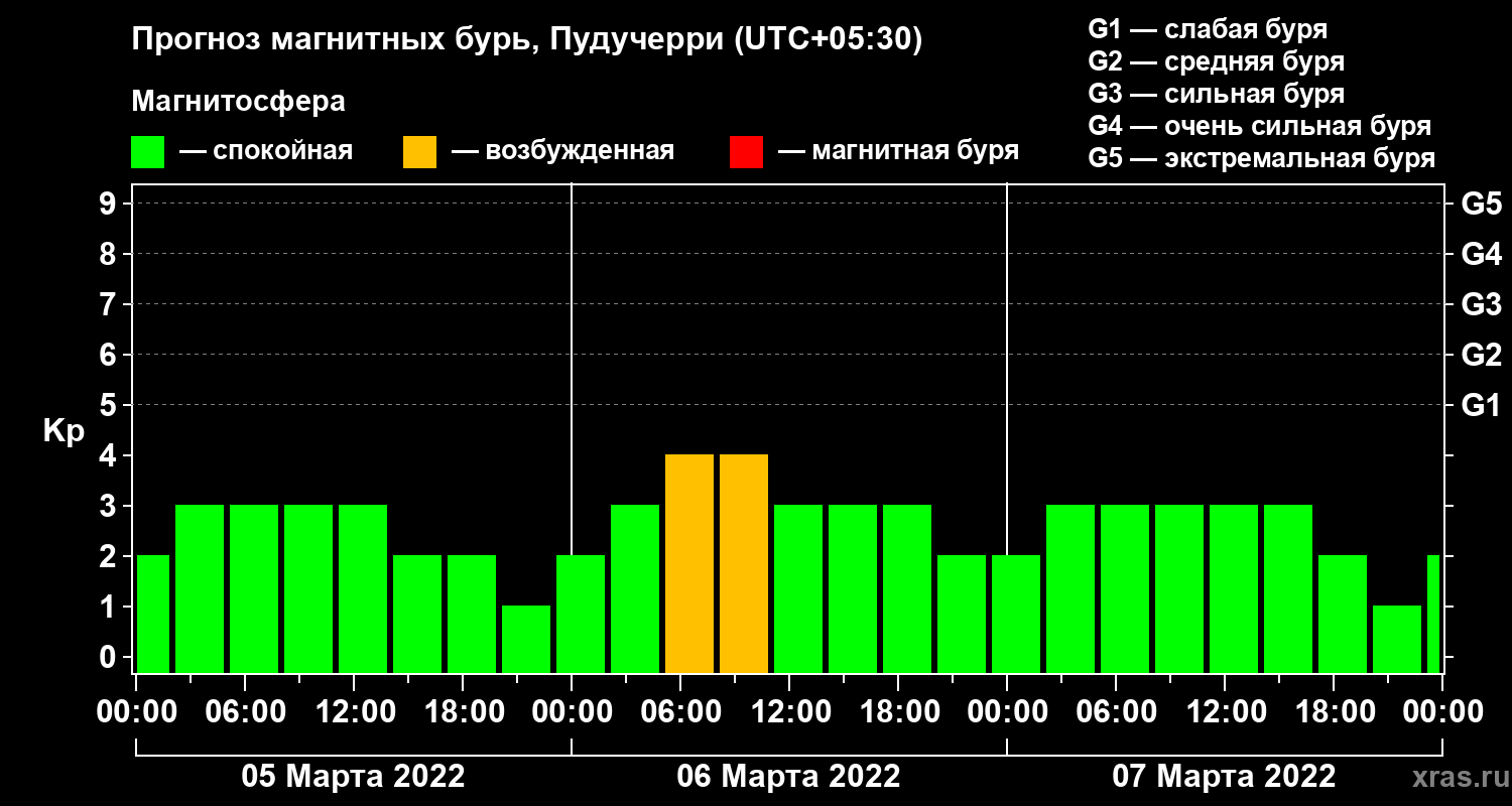 Прогноз магнитных бурь Пудучерри — 5 марта 2022 года