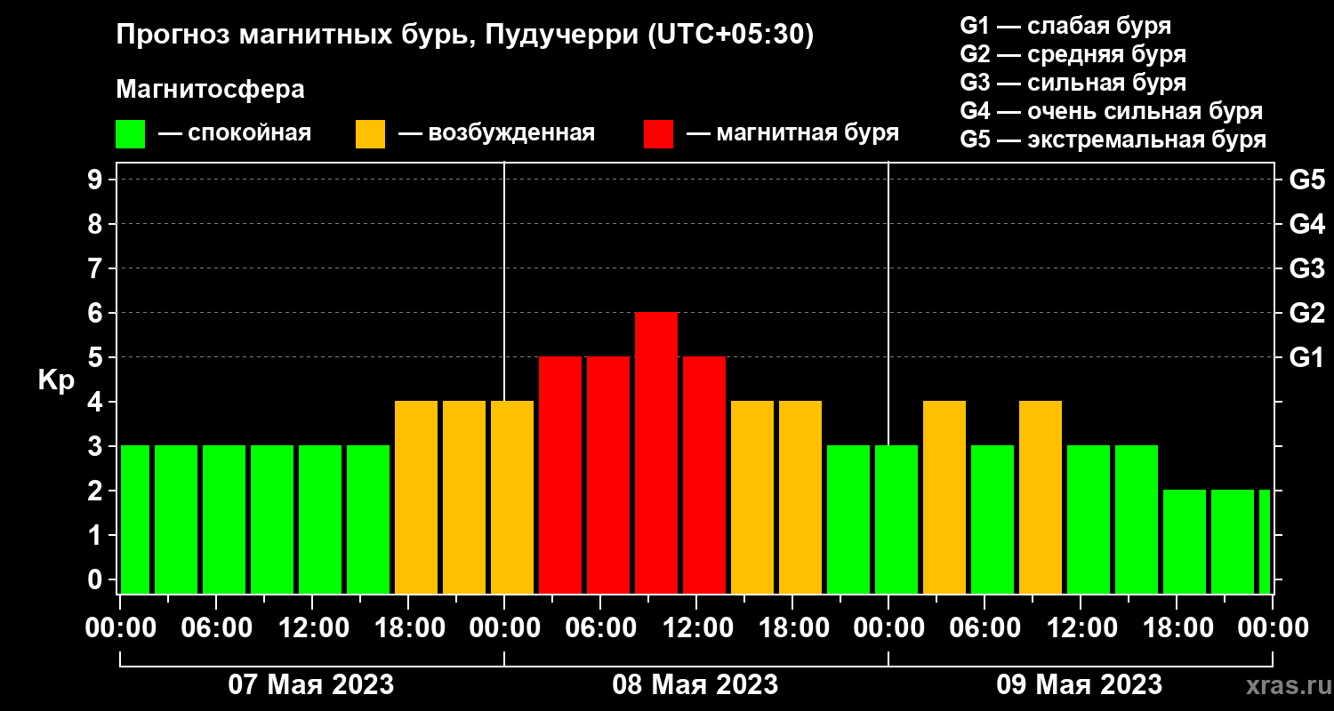 Прогноз магнитных бурь Пудучерри — 7 мая 2023 года