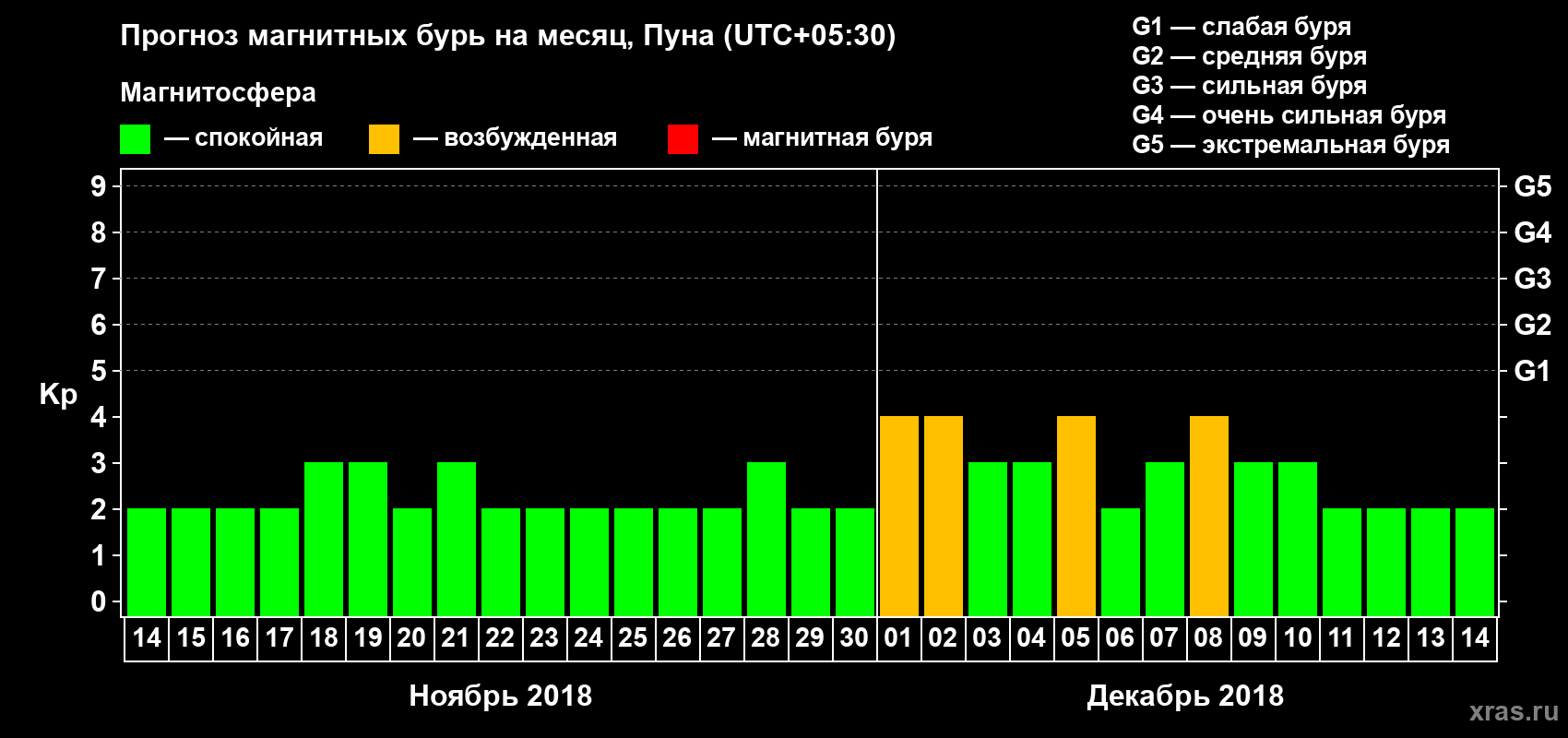 Прогноз магнитных бурь в Пуне — 14 ноября 2018 года