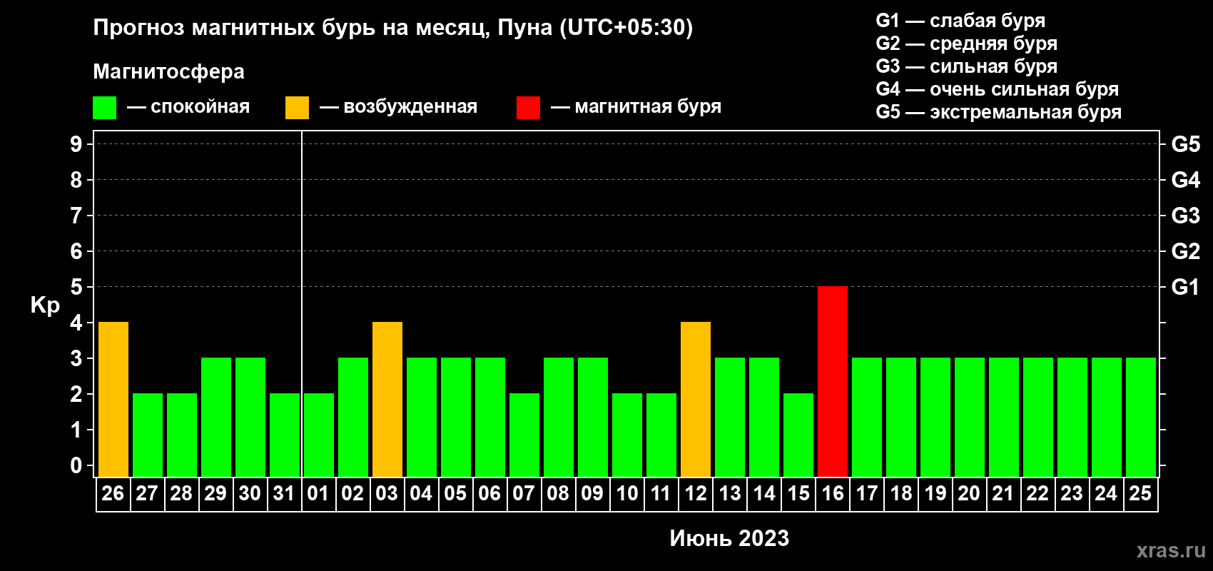 Прогноз магнитных бурь в Пуне — 26 мая 2023 года