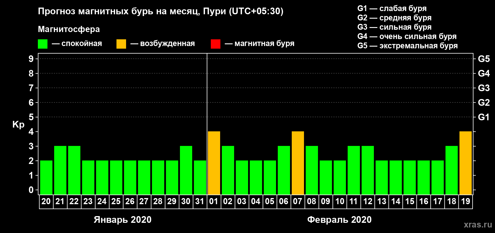 Прогноз магнитных бурь Пури на 20 января 2020 года