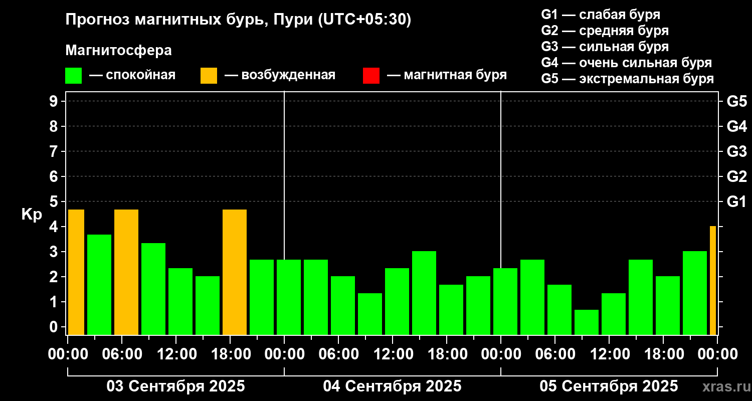Прогноз магнитных бурь Пури на 3 сентября 2025 года