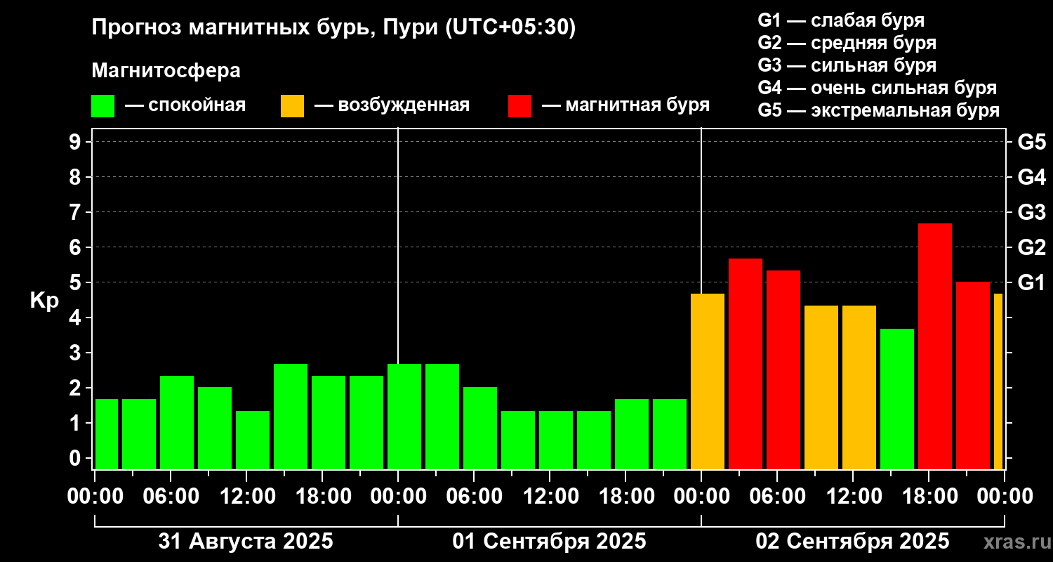 Прогноз магнитных бурь Пури — 31 августа 2025 года