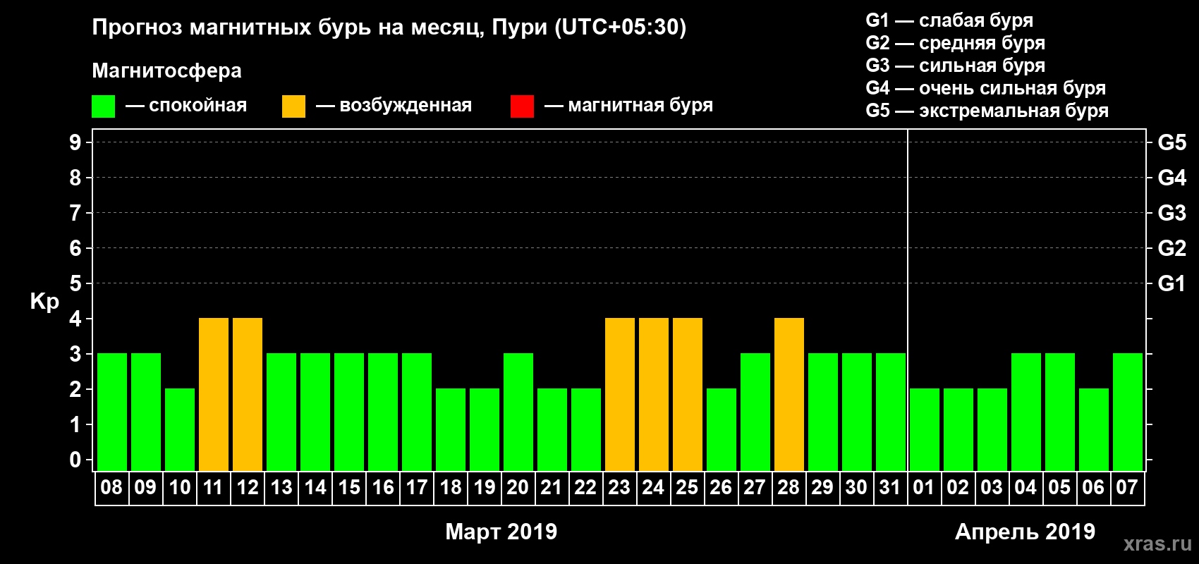 Прогноз магнитных бурь Пури на 8 марта 2019 года