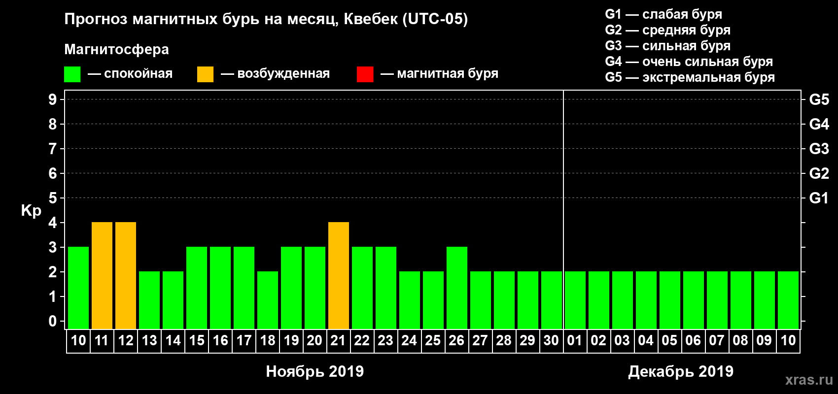 Прогноз магнитных бурь в Квебеке — 10 ноября 2019 года