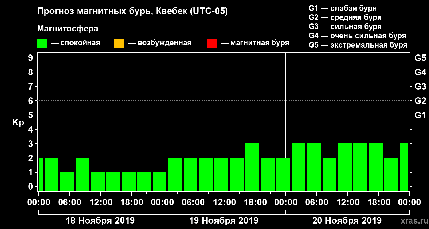 Прогноз магнитных бурь в Квебеке — 18 ноября 2019 года