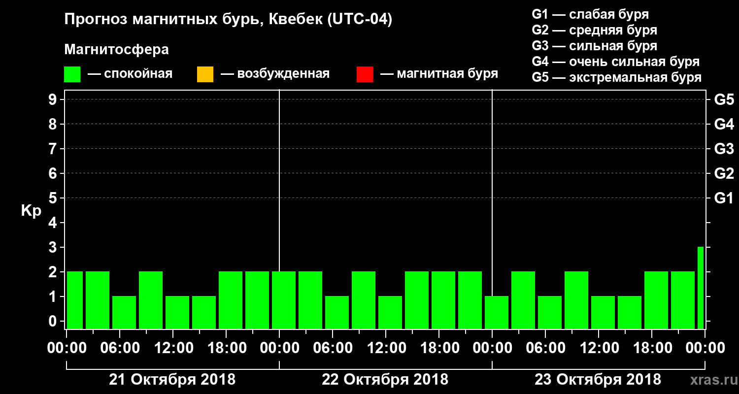 Прогноз магнитных бурь в Квебеке на 21 октября 2018 года