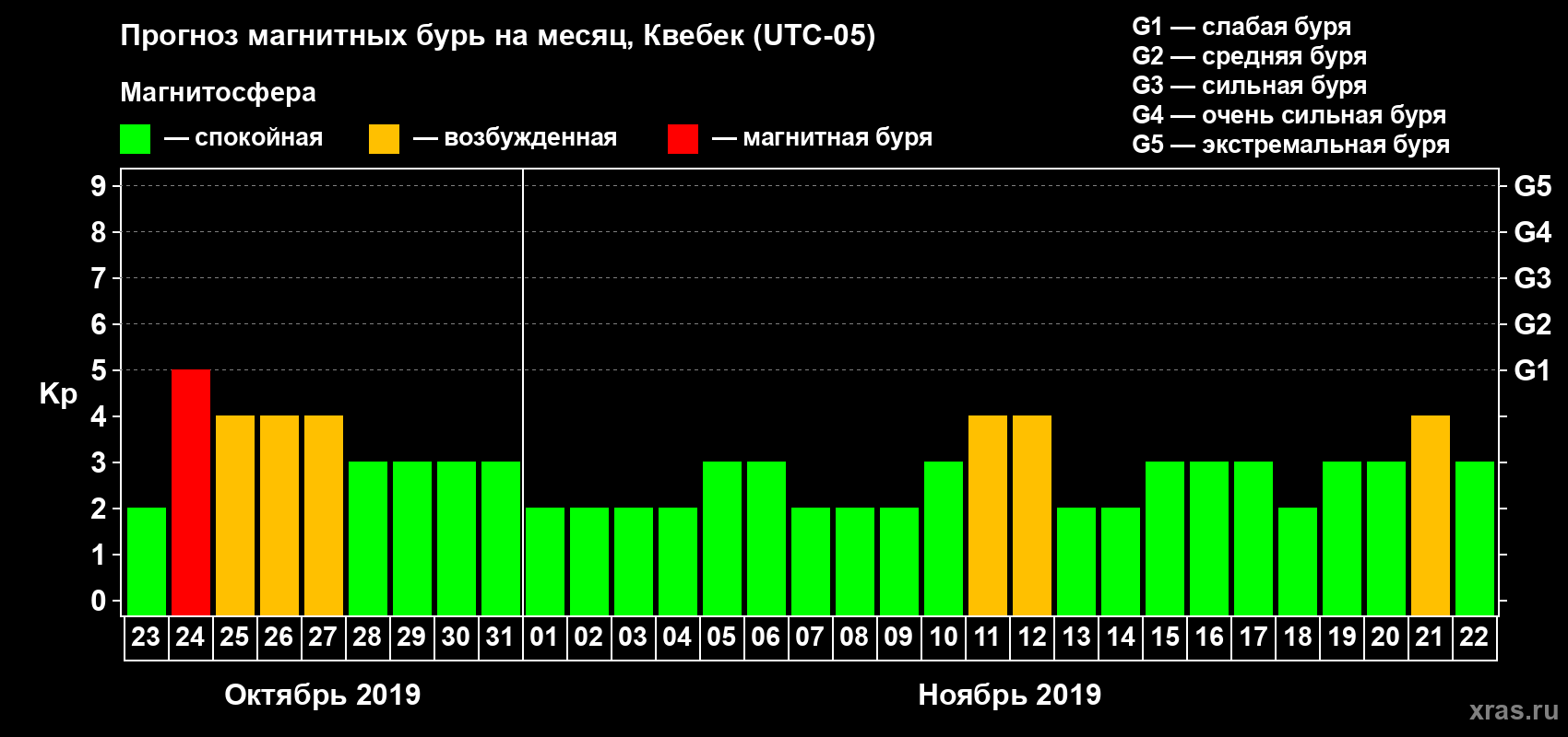 Прогноз магнитных бурь в Квебеке — 23 октября 2019 года