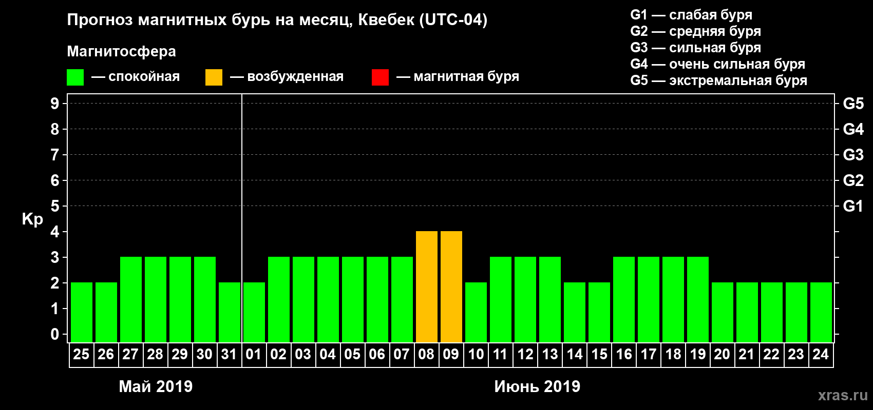 Прогноз магнитных бурь в Квебеке на 25 мая 2019 года
