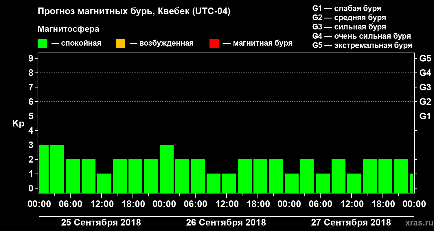 Прогноз магнитных бурь в Квебеке на 25 сентября 2018 года