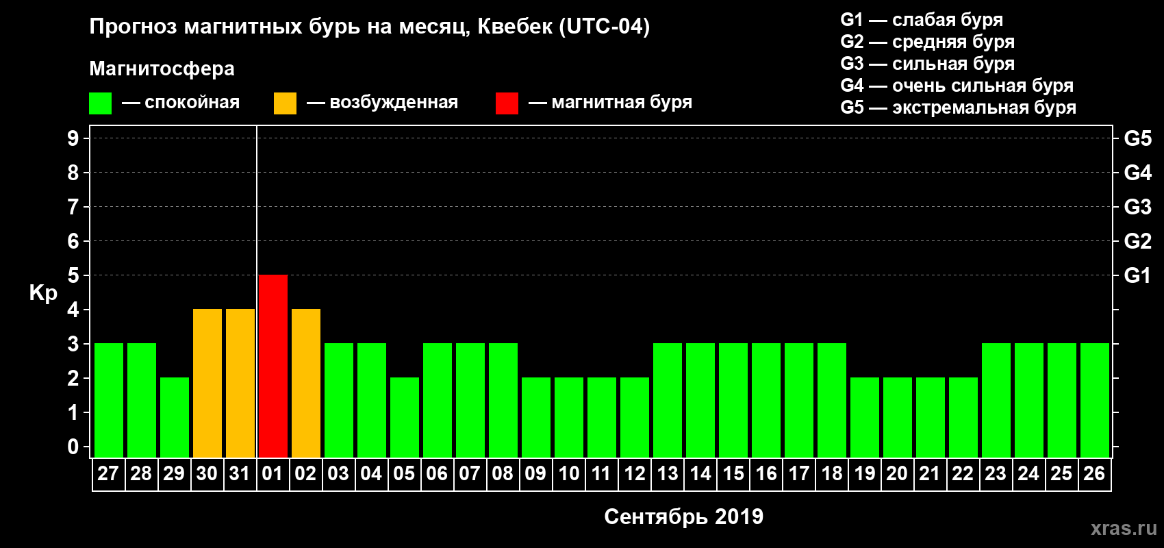 Прогноз магнитных бурь в Квебеке — 27 августа 2019 года