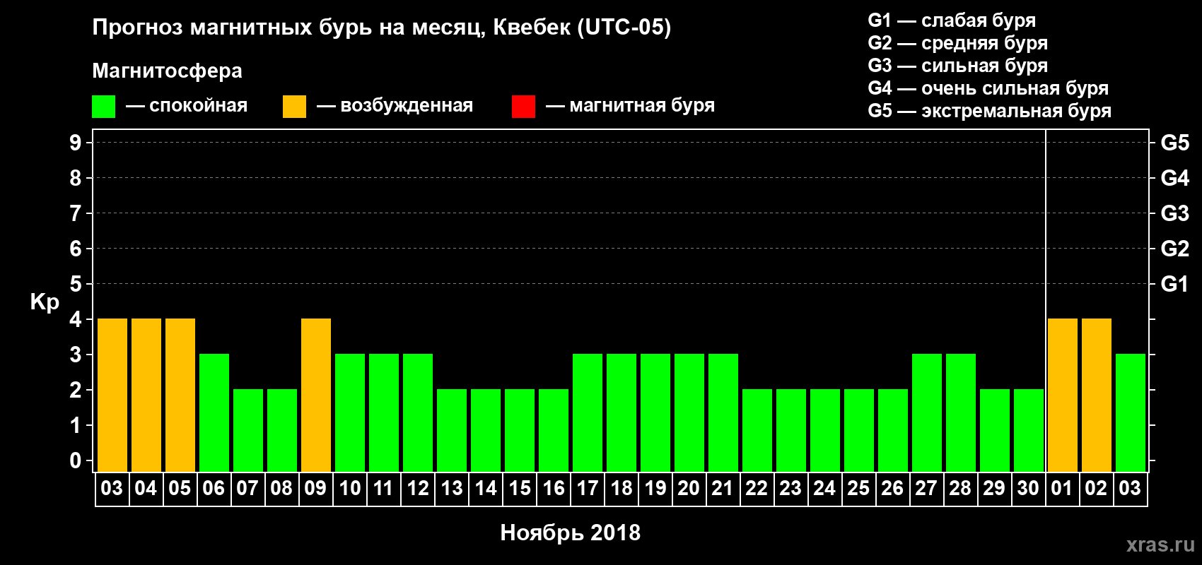 Прогноз магнитных бурь в Квебеке на 3 ноября 2018 года