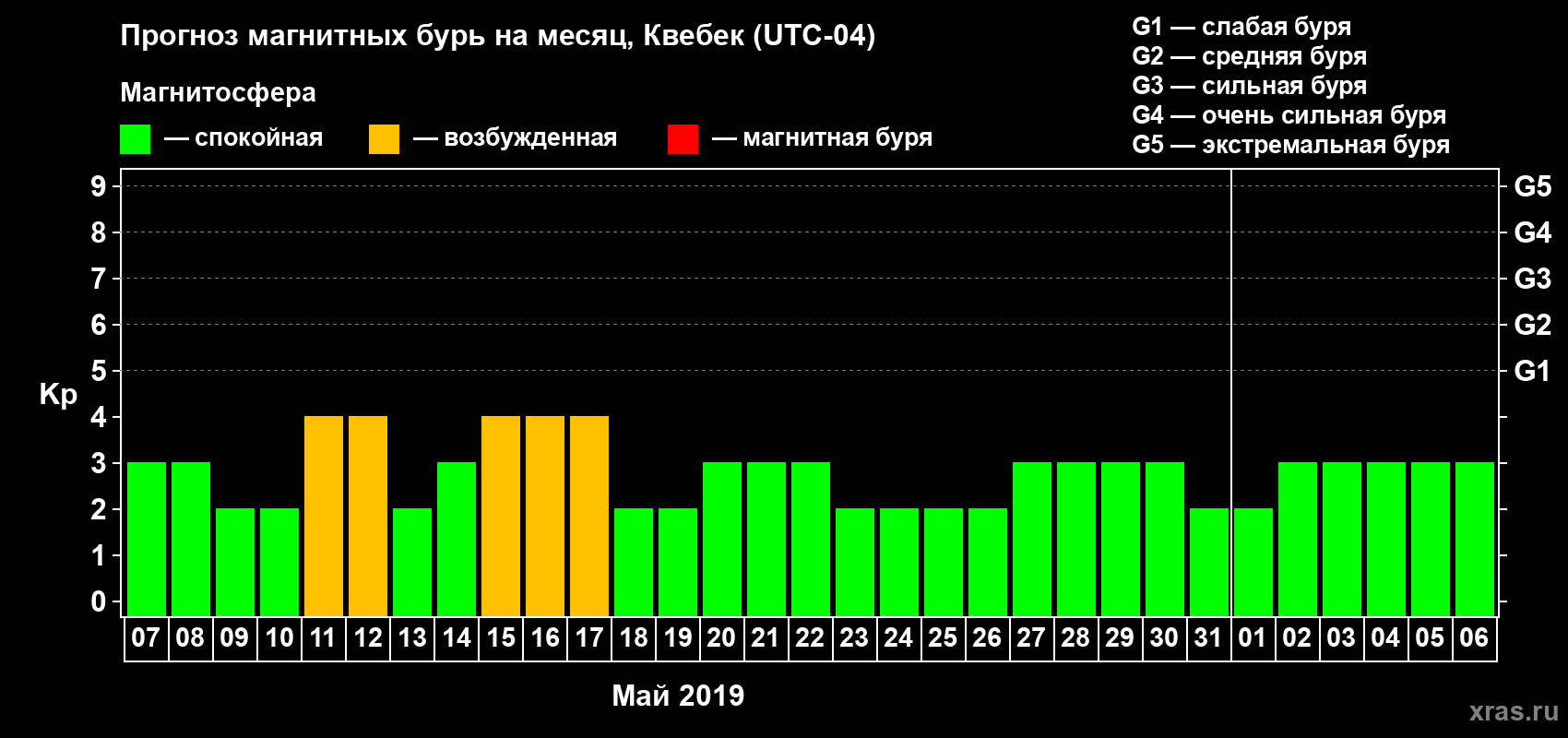 Прогноз магнитных бурь в Квебеке на 7 мая 2019 года