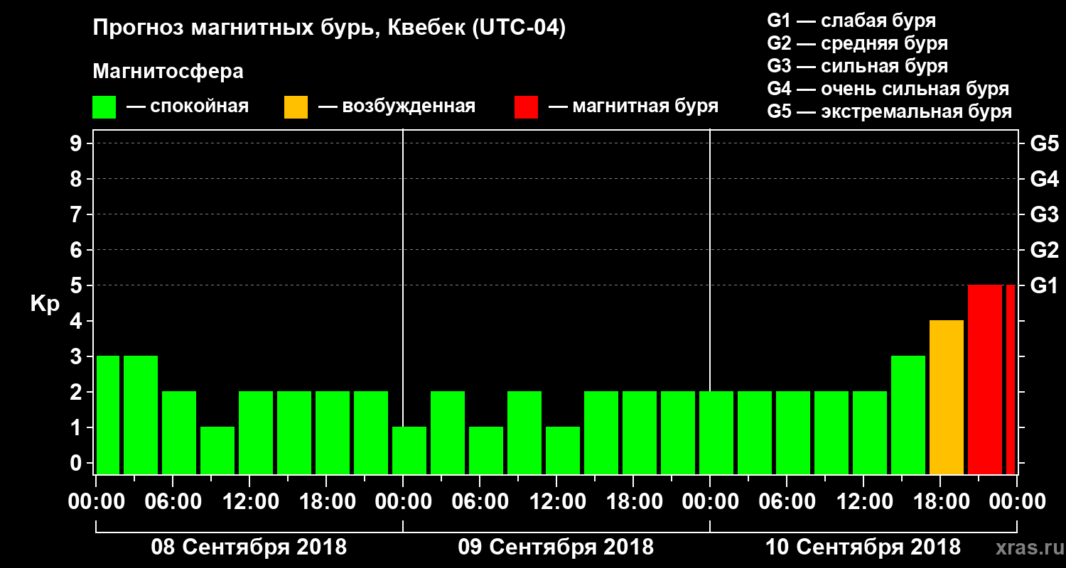 Прогноз магнитных бурь в Квебеке на 8 сентября 2018 года