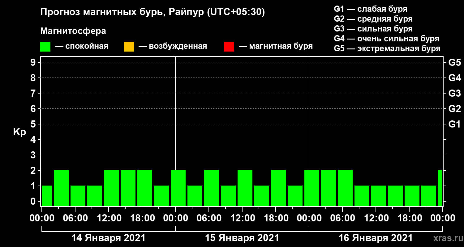 Прогноз магнитных бурь в Райпуре — 14 января 2021 года