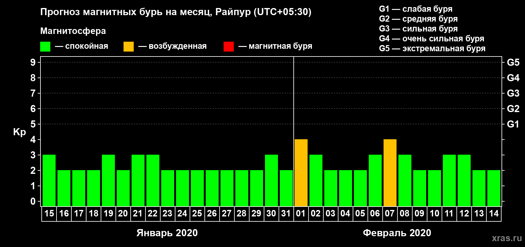 Прогноз магнитных бурь в Райпуре — 15 января 2020 года