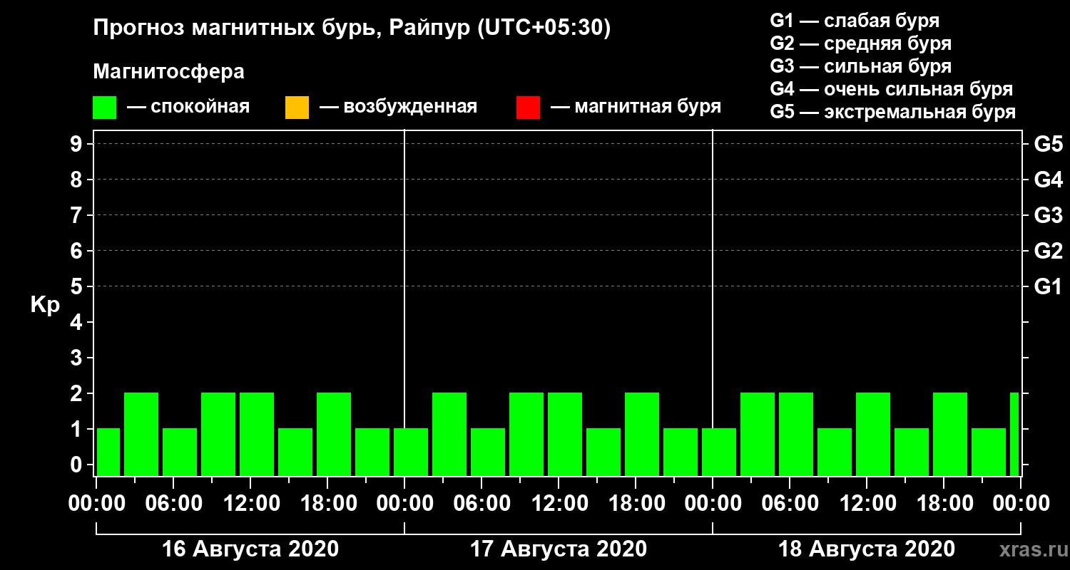 Прогноз магнитных бурь в Райпуре — 16 августа 2020 года