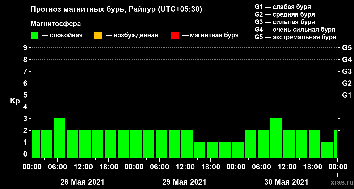 Прогноз магнитных бурь в Райпуре — 28 мая 2021 года