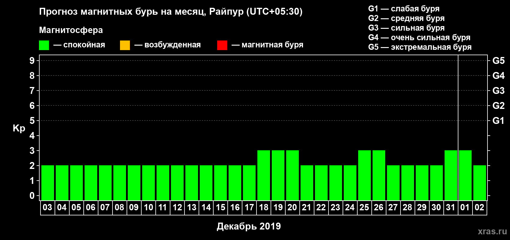 Прогноз магнитных бурь в Райпуре — 3 декабря 2019 года