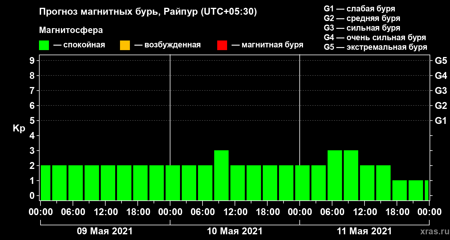 Прогноз магнитных бурь в Райпуре — 9 мая 2021 года