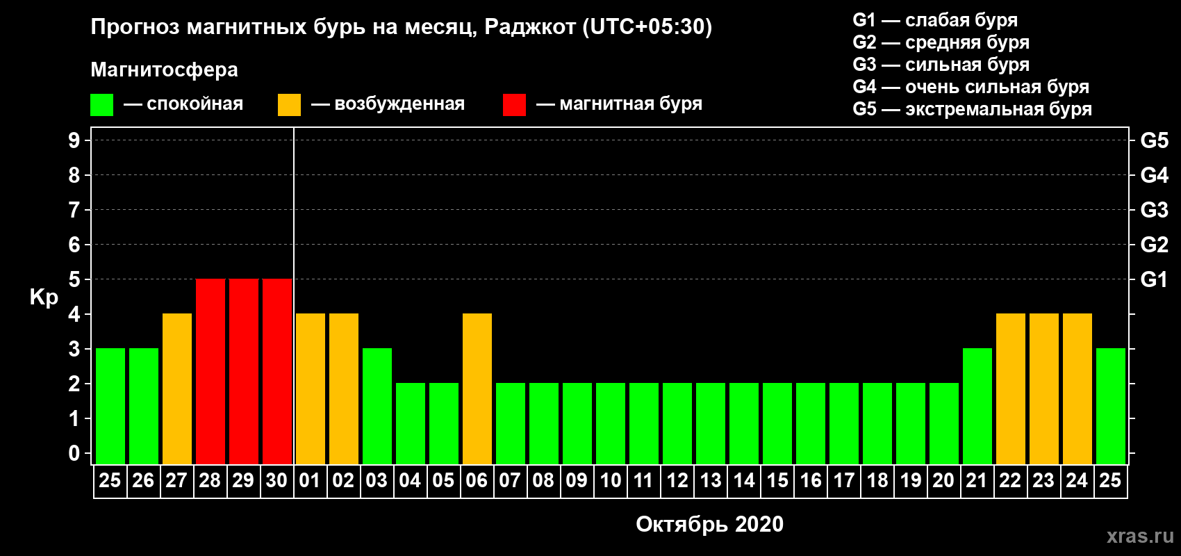 Прогноз магнитных бурь в Раджкоте — 25 сентября 2020 года