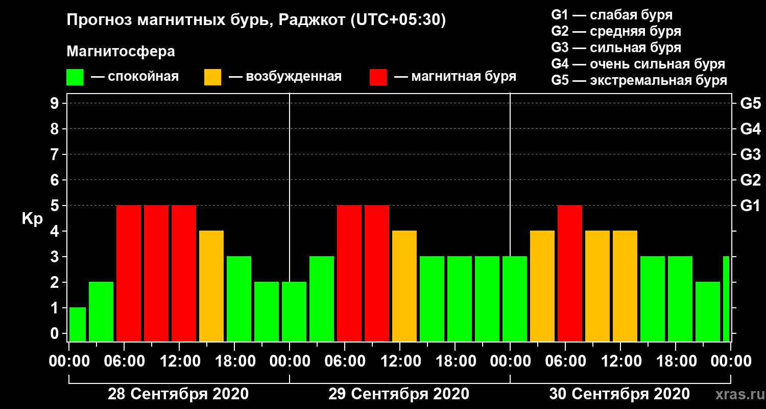 Прогноз магнитных бурь в Раджкоте — 28 сентября 2020 года