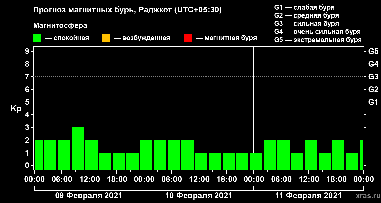 Прогноз магнитных бурь в Раджкоте — 9 февраля 2021 года