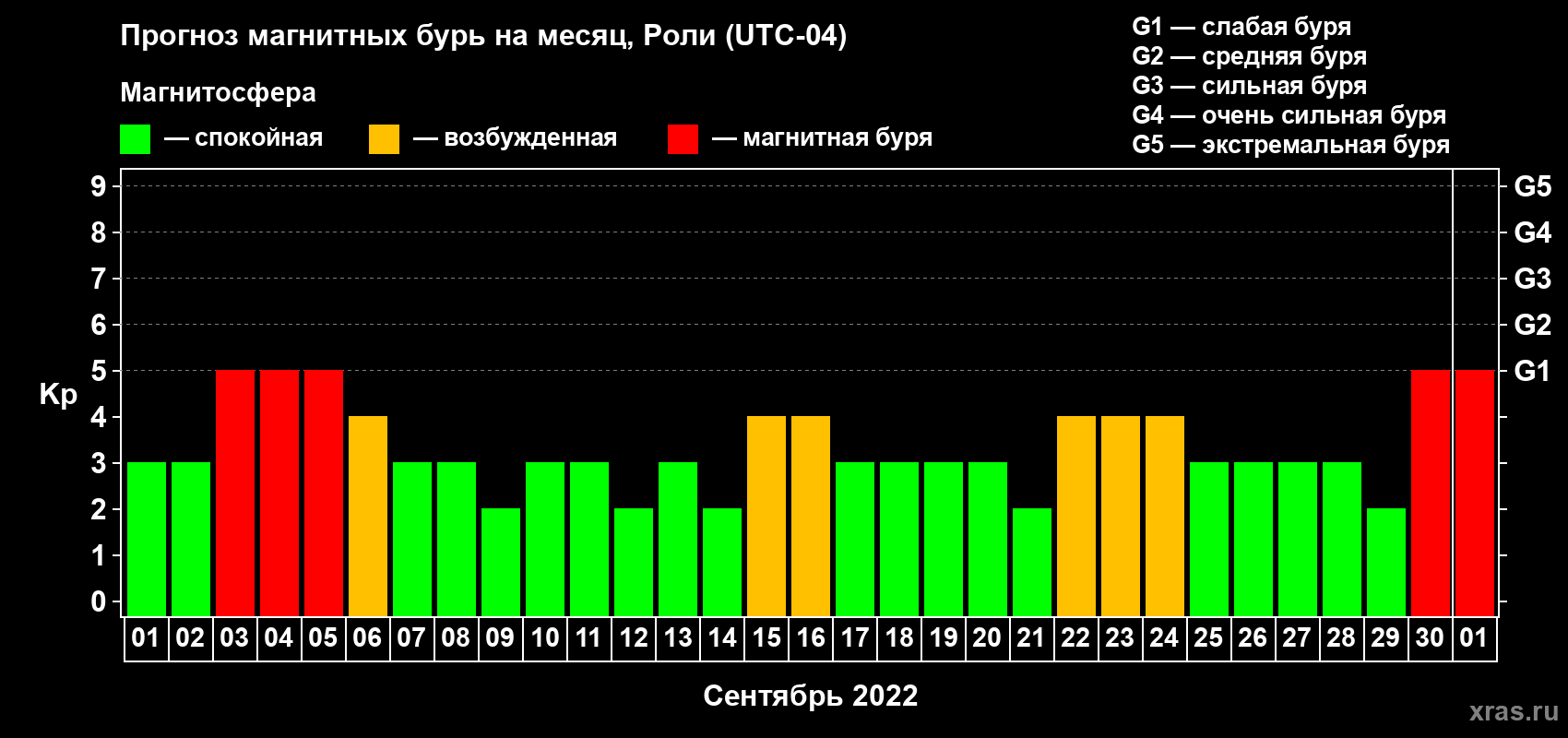 Прогноз магнитных бурь Роли на 1 сентября 2022 года