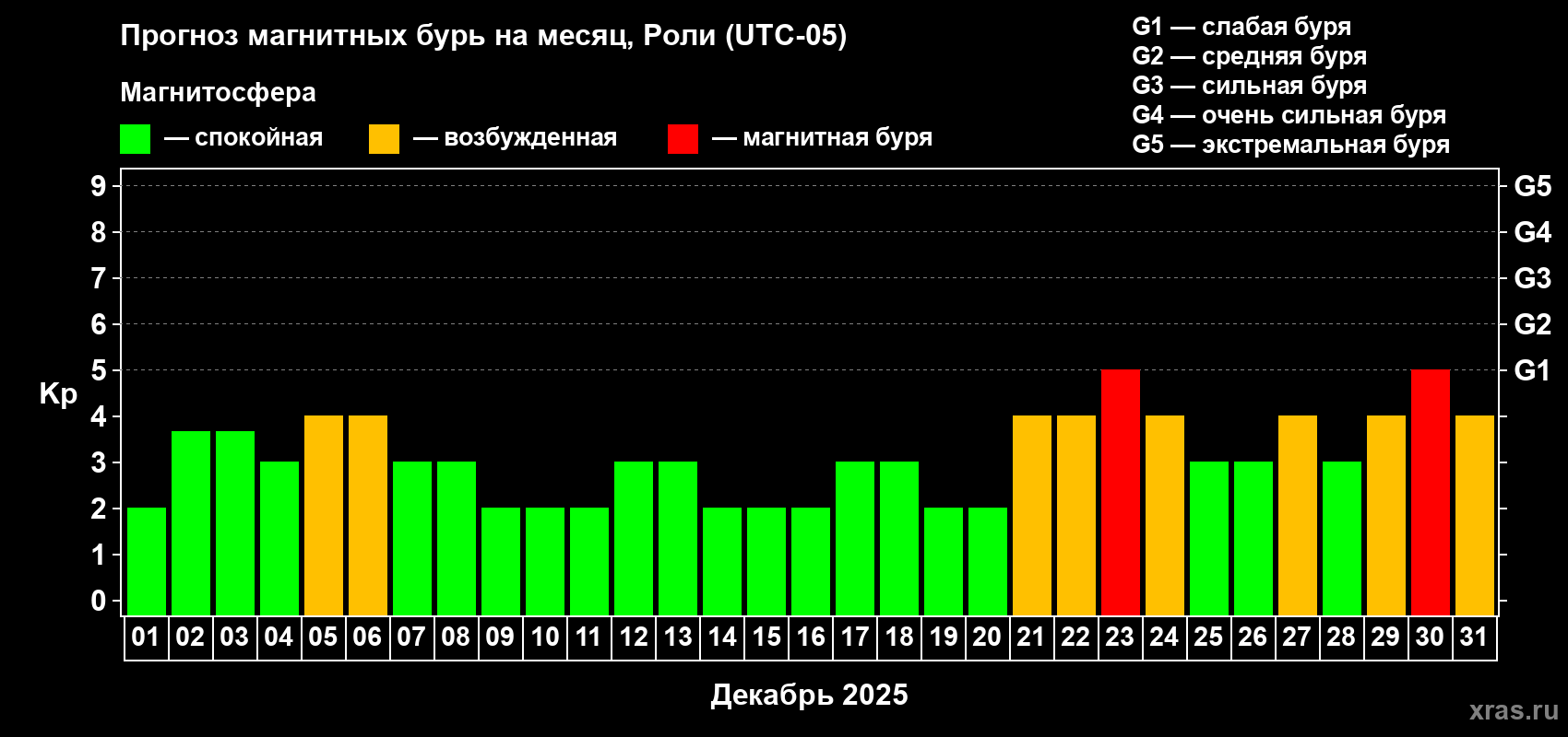 Прогноз магнитных бурь Роли — 1 декабря 2025 года