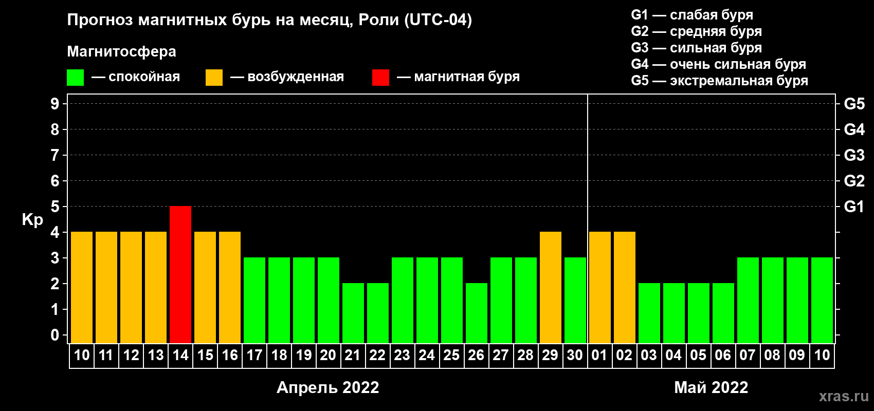 Прогноз магнитных бурь Роли — 10 апреля 2022 года