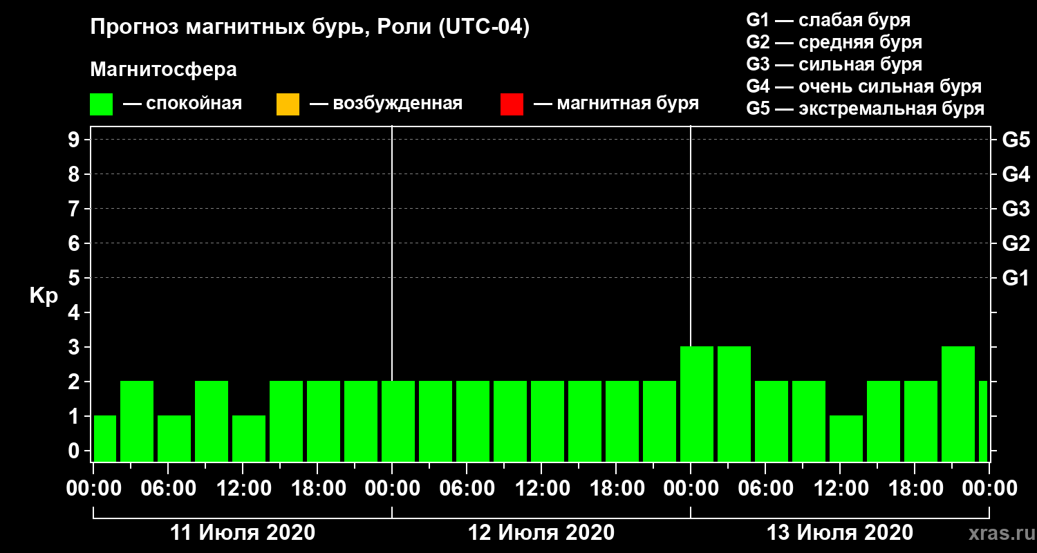 Прогноз магнитных бурь Роли — 11 июля 2020 года