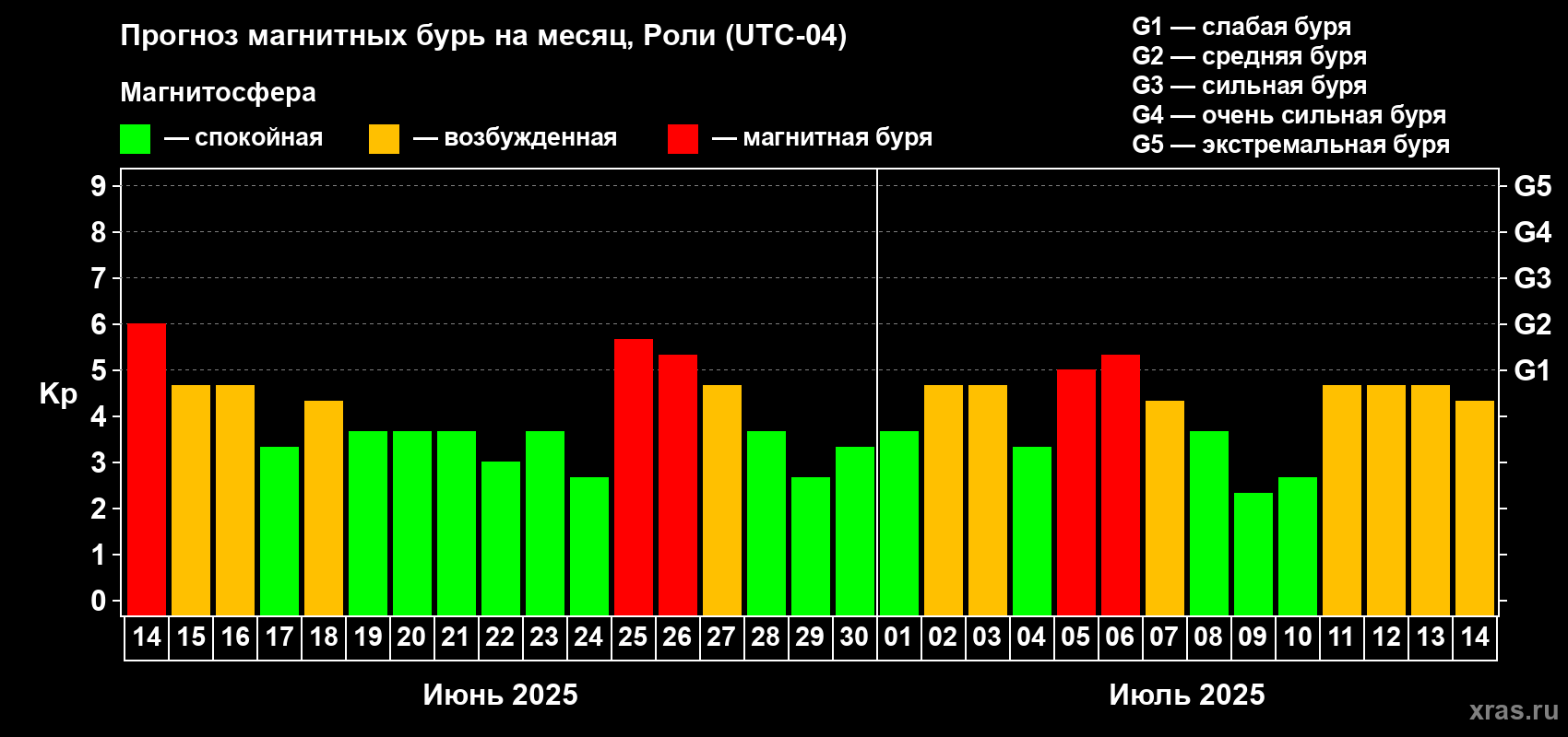 Прогноз магнитных бурь Роли — 14 июня 2025 года